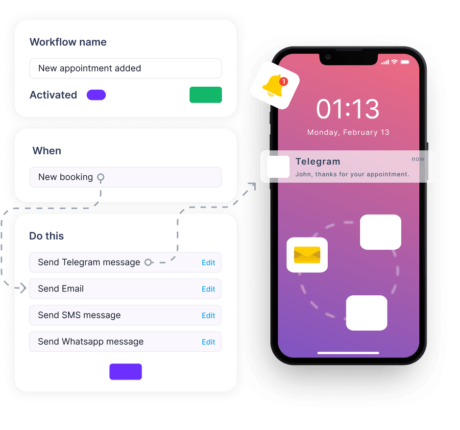 Online booking is essential for automating service businesses, and our platform handles it all. With seamless integrations, you can automate the entire booking process—from scheduling to follow-ups. Automated alerts and reminders keep communication fast and cost-effective.